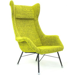 Fauteuil à dossier en tissu jaune et vert de Miroslav Navratil pour Ton, 1960