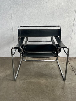 1 fois Alias 109 Italy fauteuil spaghetti (couleurs Chrome & cuir noir) En bon état d'usage avec des signes d'utilisation.