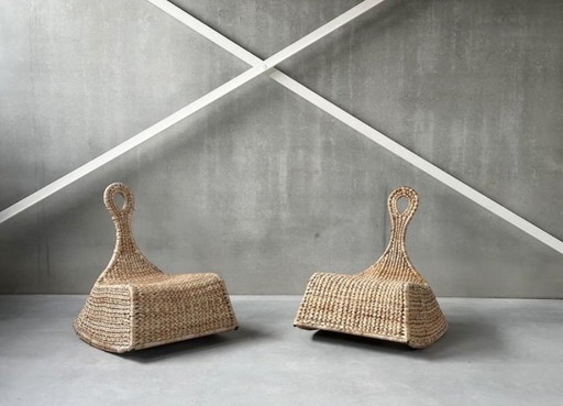 Rare chaise à bascule en rotin Rohé Noordwolde design vintage