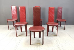 Roberto Barbieri For Zanotta - 4 Chairs "Lea" In Burgondy. Le nouveau prix est actuellement d'environ 1 237,79 € par chaise.