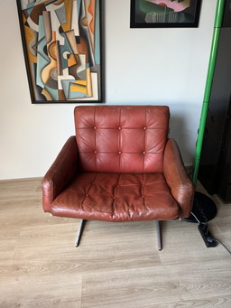 2x Leolux Dolcinea fauteuil en cuir + pouf