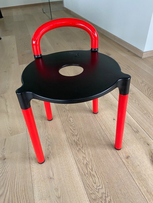 Tabouret rouge moderniste des années 1930