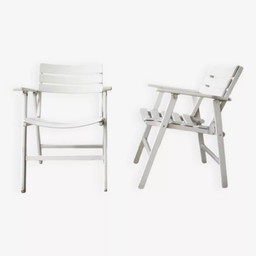 Paire De Chaises De Jardin Buffalo En Bois Peint En Blanc, W.Germany, 1970