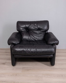 FAUTEUIL VINTAGE DES ANNÉES 1970 « CORONADO » EN CUIR NOIR, CONÇU PAR TOBIA SCARPA POUR B&B ITALIA