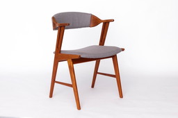 Fauteuil danois unique – Chaise de bureau ou de salle à manger vintage en teck des années 1960/1970, revêtement gris, style mode