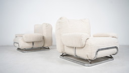 Paire de fauteuils modernes du Mid Century, chrome et tissu bouclé