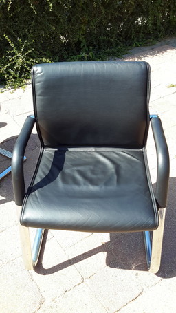 Fauteuil design cuir noir/acierFauteuil design cuir noir/acier