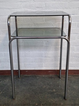 Table d'appoint à double étagère en verre fumé et chrome