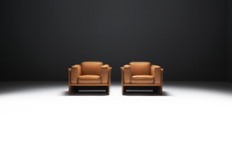 2 x Fauteuil club en cuir de mouton couleur cognac