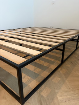Cadre de lit en acier noir mat, matelas Matt Sleeps inclus (160 x 200 cm).