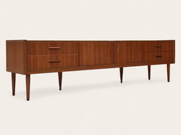 Commode scandinave en teck du milieu du siècle – Détails sculptés élégants