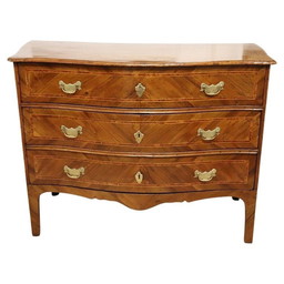 Commode ancienne en noyer marqueté, Italie XVIIIe siècle, restaurée