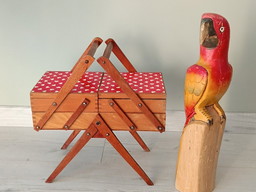 Meuble de mercerie vintage en hêtre, années 1950