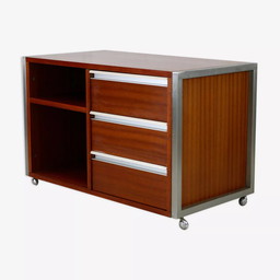 Buffet de cuisine Niestrath - années 1960 en bois revêtu de Resopal avec poignées de porte chromées