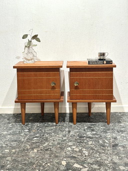Ensemble de deux tables de nuit 60s sur pieds en bois élancés