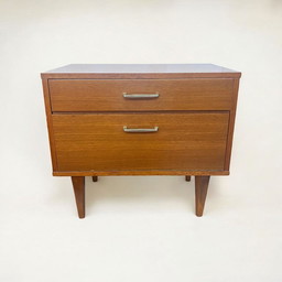 Années 50 - Bois, laiton, verre - Commode et table de nuit