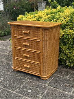 Commode à tiroirs en rotin, table de chevet, années 1980