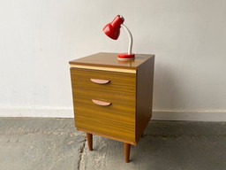 Table de nuit vintage en teck scandinave avec contraste géométrique
