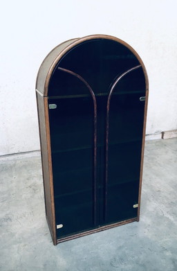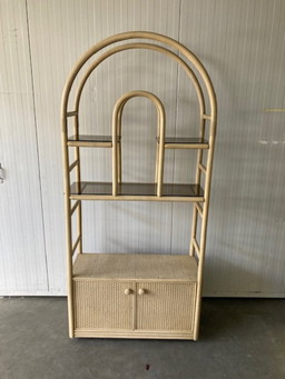 Coffre haut de présentation en rotin et bambou au design des années 1970