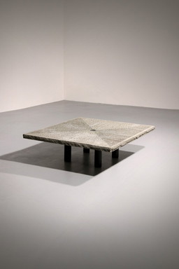 Table basse de style brutaliste, Paul Kingsma, ardoise et acier