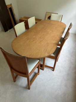 Jon Mortensen pour Koefoed Hornslet Table de salle à manger extensible & 6 chaises teck bois Danemark années 1970