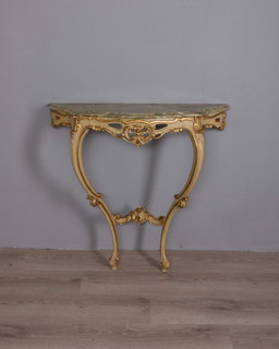 Console murale vintage, table d'appoint, table console avec plateau en marbre. Style italien.