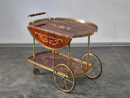 Serving Drink Bar Cart Trolley avec rabats latéraux, incrustations de marqueterie, années 1970.