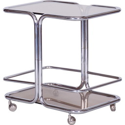 Chariot de service en chrome et verre fumé du milieu du siècle, Tchécoslovaquie, années 1960
