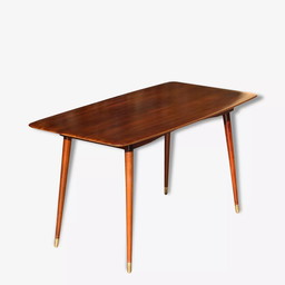 Table ronde en bois et laiton Vintage 1960S Design Luciano Frigerio