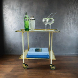 70S Chariot de service * Vintage Hollywood Regency * Table à roulettes