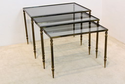 Paire de tables basses vintage en métal doré et verre, Italie 1960