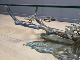 Table basse moderniste en métal, verre et laiton - années 50