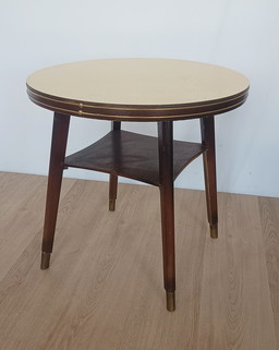 Table basse vintage avec plateau en verre et pieds coniques - années 1950