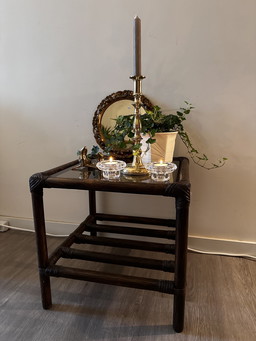 no 2 de 2 : 1970 mid century TABLE D'ACCOMPAGNEMENT table basse bambou osier verre