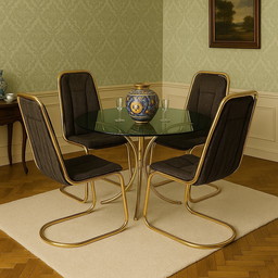 Vintage eettafel set met stoelen Gastone Rinaldi 70s messing (jaren 70) mid century design (itiliaans design) Hollywood regency
