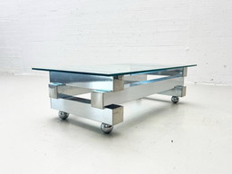 Table basse coulissante vintage Belgo Chrom avec bar dissimulé - Années 1970