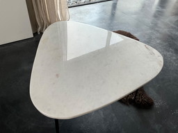 Table d'appoint en métal doré et plateau en marbre, style René Prou
