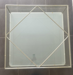 Table basse en marbre et verre des années 1960-1970, design inspiré de l'ère spatiale.