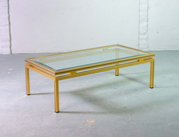 Table basse vintage en bronze avec plateau en verre poliTable basse vintage en bronze avec plateau en verre poli