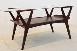 Table basse scandinave en teck avec plateau en verre originalTable basse scandinave en teck avec plateau en verre original