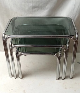 2 Tables gigognes vintage avec verre fumé
