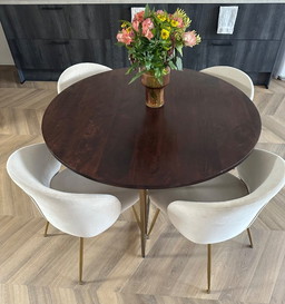 Table de salle à manger ronde avec plateau en cuivre 'Driebergen' Vintage