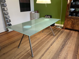 Tecta table en porte-à-faux, table de salle à manger / dining table, table en verre avec cadre en acier inoxydable à B20, B25