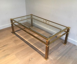 Console Imperio en marbre concassé avec plateau en verre facetté