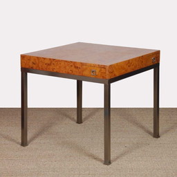 Table à jeu en loupe de bois par Guy Lefevre pour Maison Jansen, 1970