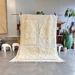 Tapis écru de Beni Ouarain, motifs géométriques et courbes - Fait main 3x2M
