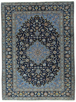 Tapis d'Orient Kashan noué à la main en liège - 396 x 304 cm | Laine de liège fine, médaillon classique & motif floral