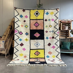 Tapis en laine de mouton aux tons rouges et jaunes, 325 x 170 cm