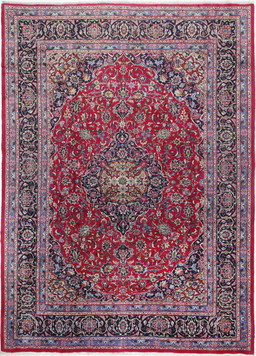 Tapis vintage aux couleurs rouge et bleu foncé 236x170cm