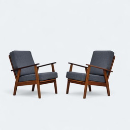 Paire de fauteuils lounge du milieu du siècle, design tchécoslovaque, années 1940, en bois courbé et tissu recyclé naturel.